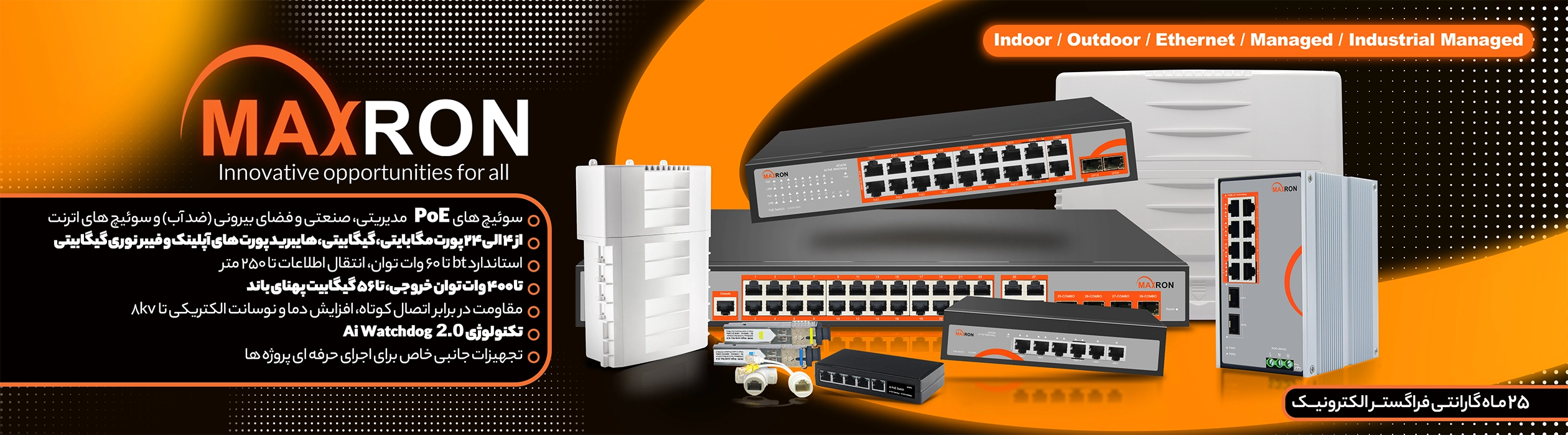 مجهز به تکنولوژی AI Watchdog2.0و راه اندازی مجدد برق و دیتای هر پورت به صورت