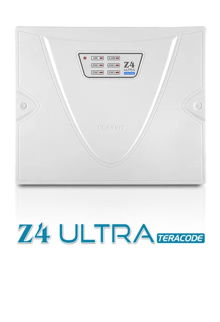 کـلاسیـک Z4 ULTRA TERACODE جـدیـدتـریـن مـدل از پـرفـروشتـریـن سیستـمهـای حفاظتی اماکن در کشور است. امکانات پیشـرفتـه دستگـاه و سـادگـی نصب و استفاده از آن، موجب شده تا Z4 ULTRA منـاسـب حفـاظـت از کلیـۀ اماکن مسکونی، اداری، تجاری، بانکها و جواهرفروشیها باشد. سیستم رمز 64 بیتی با رمز متغیر(TERACODE) امکان کنترل سیستم با پیامک از طریق G1 ULTRA امکان افزاریش زونها تا 12 زون بوسیله Expander Pro امکان ست کردن 15 چشم بیسیم FOX2 با قابلیت آدرسدهی و نامگذاریامکان ست کردن 15 مگنت بیسیم پالس با قابلیت آدرس دهی و نامگذاری امکان ست کردن 15 ریموت با قابلیت آدرس دهی امکان نظارت مرکزی بر دستگاه بوسیله اپلیکیشن Classic Central (مناسب سازمانهایی با شعبات متعدد) ارسال گزارش اتفاقات با پیامک از طریق G1 ULTRA آلارم هوشمند برای پدال (پیامک و آژیر) امکان استعلام وضعیت دستگاه و برق شهر از طریق پیامکامکان فعال کردن پیامک اولین ورود بوسیله ریموتامکان غیرفعال کردن زون 24 ساعته بوسیله ریموت امکان فعال و غیر فعال کردن دینگدانگ برای زون 1 اپلیکیشن موبایل برای گوشیهای Apple و Android
